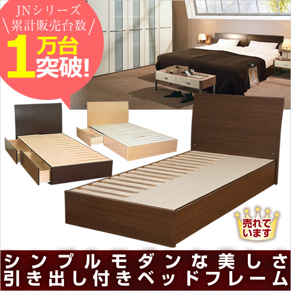 | シングル サイズ ベッドフレーム JN-3401ダークブラウン/ナチュラルブラウン収納付き 木製ベッド 桐 すのこ フレームのみ70%off 半額以下 【あす楽対応】 |