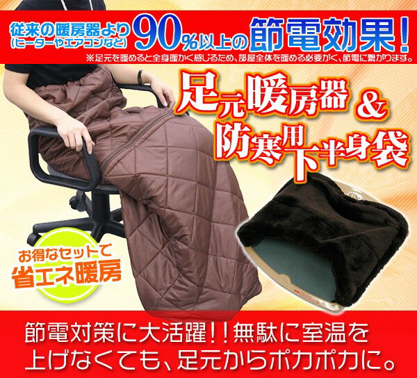 - 【特別価格】足元暖房機(足温器)&レッグウォーマー下半身袋 お買い得セット/最大90%以上の節電効果!/省エネ暖房/足元ヒーター